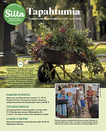 Yhdessä toimittaja Janne Villan kanssa avaimet käteen -periaatteella toteutettu kausiesite Huopalahden seurakunnalle 2009. Tarjosimme sisällön ja ulkoasun suunnittelun ja toteutuksen, juttujen kirjoittamisen, valokuvauksen ja graafisen toteutuksen.