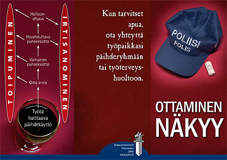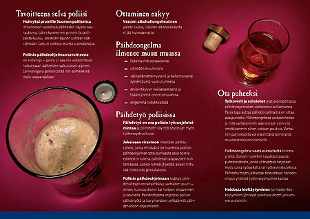 Poliisin päihteiden vastaisen kampanjan esite 2005 (kuvasuunnittelu ja valokuvat Timo Saarinen).
