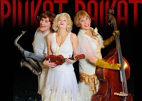 Piukat paikat. Musikaali Järvenpään teatterissa 2008. Teatteriesityksen graafinen suunnittelu. Kuvassa Teemu Paananen, Elina Varjomäki ja Mikko Korhonen. Käy katsomassa kertomus Piukkojen paikkojen graafisesta suunnittelusta täällä.