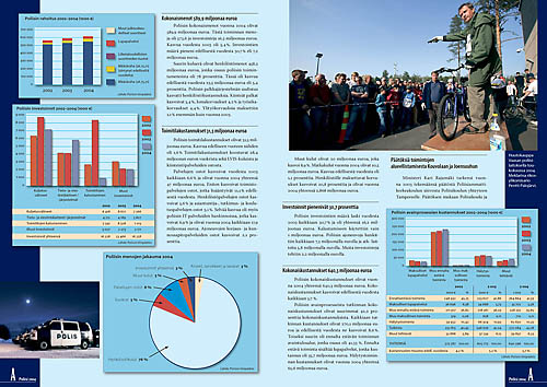 Poliisin vuosikertomus 2004. Graafinen suunnittelu ja toteutus (valokuvat Sami Hätönen ja Esko Jämsä).