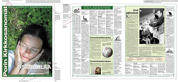 Porin kirkkosanomat -lehden ulkoasun suunnittelu 2004.