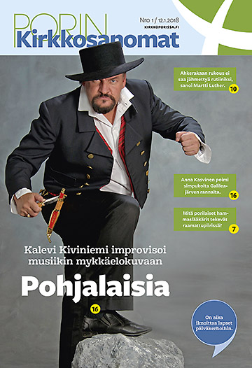 Porin kirkkosanomat. Ulkoasu-uudistus 2018. Kuvassa on suunnitelman mallilehden kansi.