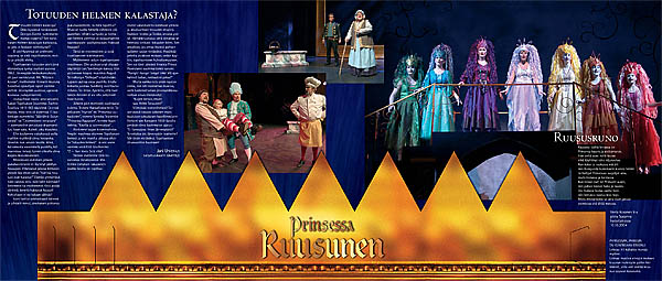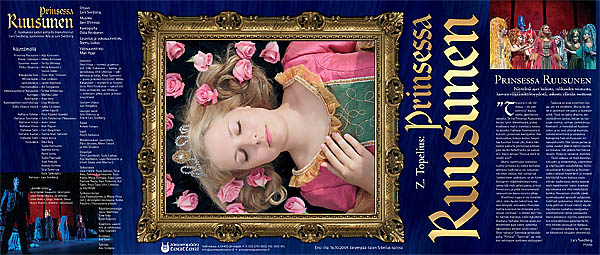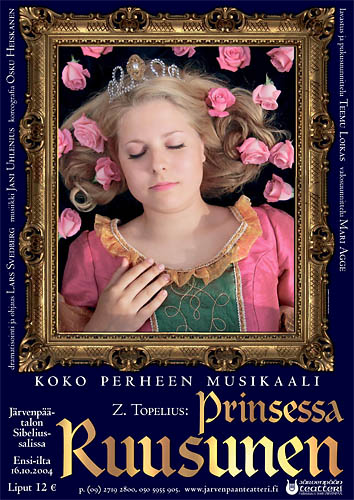 Prinsessa Ruusunen. Musikaali Järvenpään teatterissa 2004. Graafinen suunnittelu ja valokuvaus. Julisteen kuvassa Aija Korhonen.