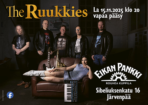 The Ruukkies -yhtyeen graafinen suunnittelu, tässä keikkajuliste. Valokuvat Veikko Korva.