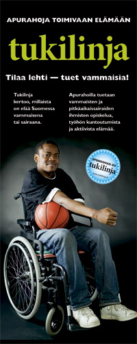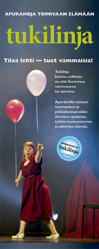 Tukilinjan viestintämateriaalit 2013. Graafinen suunnittelu. Yllä esimerkkinä pyöreä tarra, joka on samalla vinjetti, alla banderolli, kaksi roll upia ja kaksi julistetta (valokuvat Tukilinjan arkistosta).