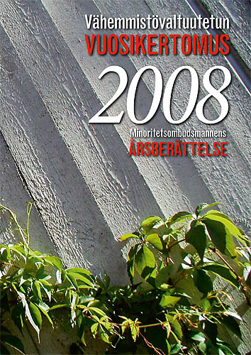 Vähemmistövaltuutetun vuosikertomus 2008. Myös kuvasuunnittelu ja valokuvat ovat Timo Saarisen. Vuosikertomus tehtiin myös englanniksi, venäjäksi ja saameksi.