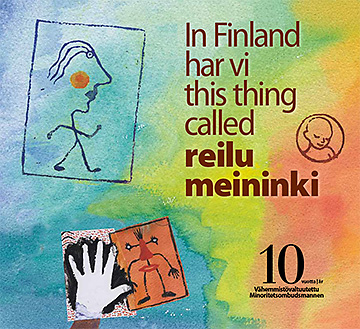 Vähemmistövaltuutetun juhlakirja In Finland har vi this thing called reilu meininki, 2011. Graafinen suunnittelu. Kuvitus Hannu Hyrske.
