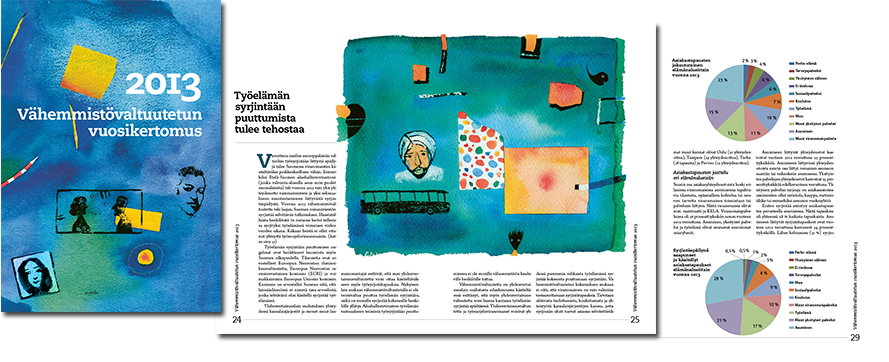 Vähemmistövaltuutetun vuosikertomus 2013. Kuvitys Hannu Hyrske.