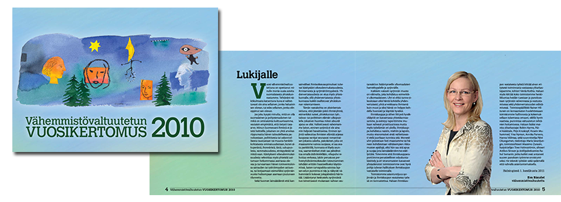 Vähemmistövaltuutetun vuosikertomus 2010. Kuvitus Hannu Hyrske.