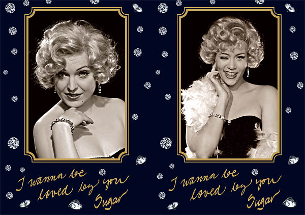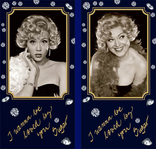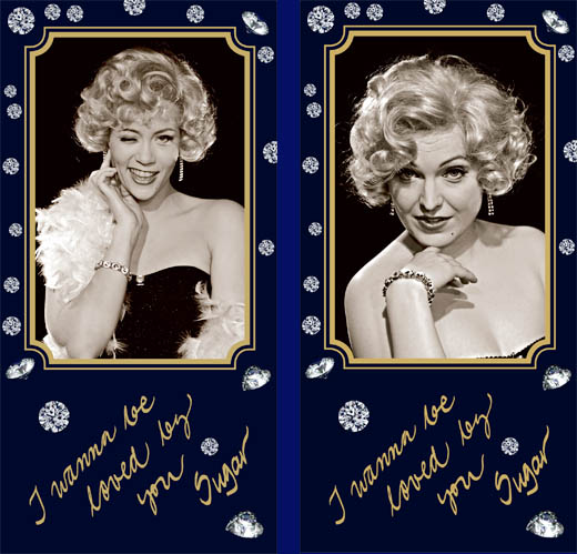Näytelmän päärooleihin oli tulossa kaksoismiehitys. Siinä vaiheessa, kun puvustus ja vähän kaikki muukin oli hyvä jos edes suunnittelun asteella, oli aika vaikea pukea näytelmän kahta päähenkilömiestä naisiksi. Niinpä päätettiin markkinointia varten kuvata vain Sugar Kane: peruukki päähän ja jotakin sellaista päälle, mikä ei voi olla pahasti ristiriidassa lopullisen roolihahmon kanssa.