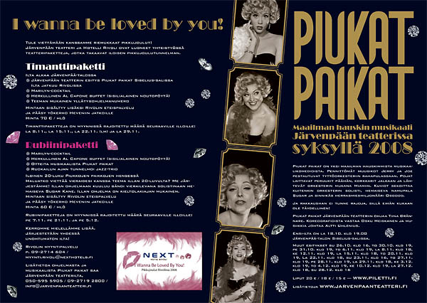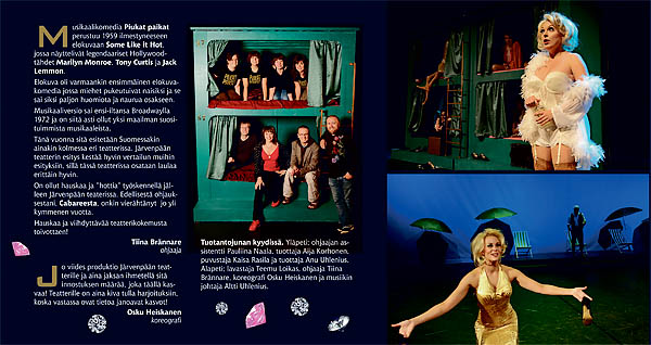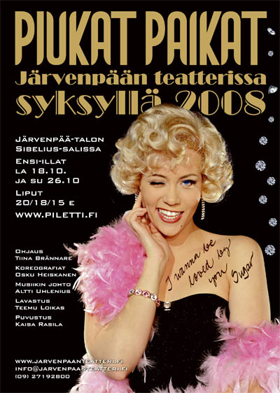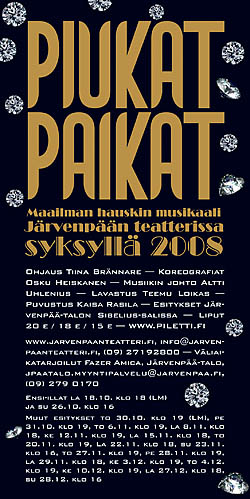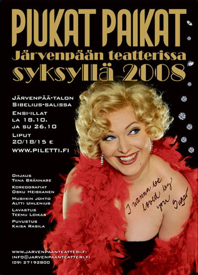 Tässä on esimerkkinä musikaali Piukat paikat, jota esitettiin Järvenpää-talon Sibelius-salissa syksyllä 2008. Ohjaaja oli Tiina Brännare, lavastuksesta vastasi Teemu Loikas, puvustuksesta Kaisa Rasila, koreografiasta Osku Heiskanen ja musiikista Altti Uhlenius.